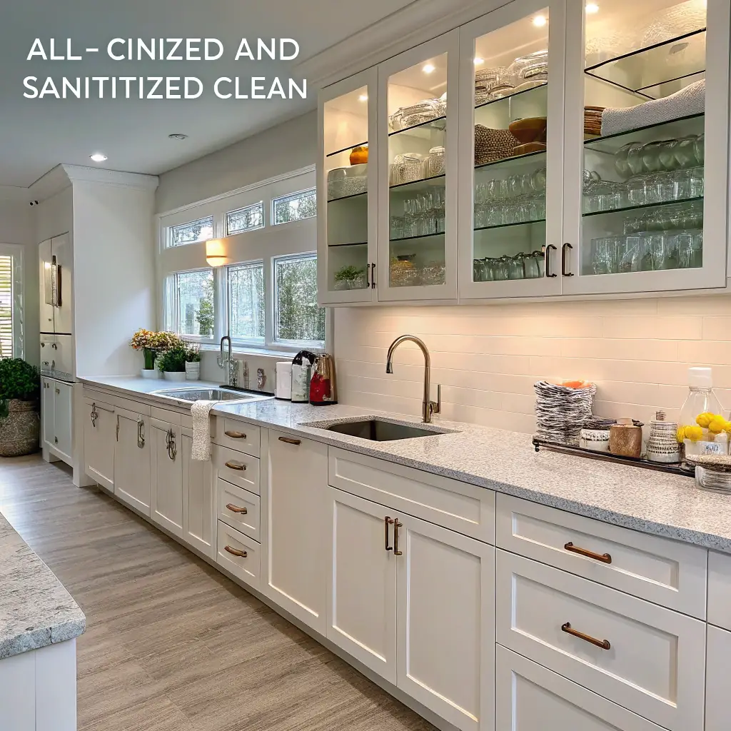 - Kitchen: Oven, stovetop, benchtops, and sink cleaning